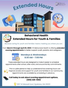 Behavioral Health Extended Hours for Youth & Families (pilot period) (MONDAYS and WEDNESDAYS)