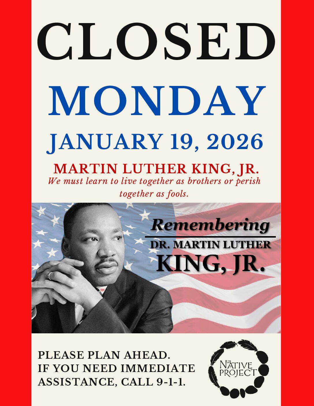 CLOSED: Dr. Martin Luther King Jr. Day