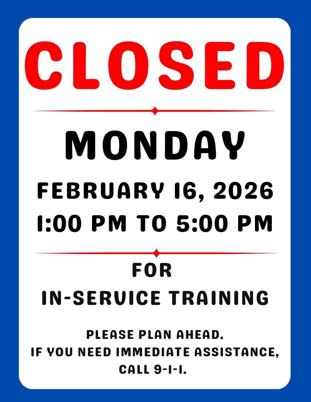 CLOSED (1/2 Day): For All-Staff Training